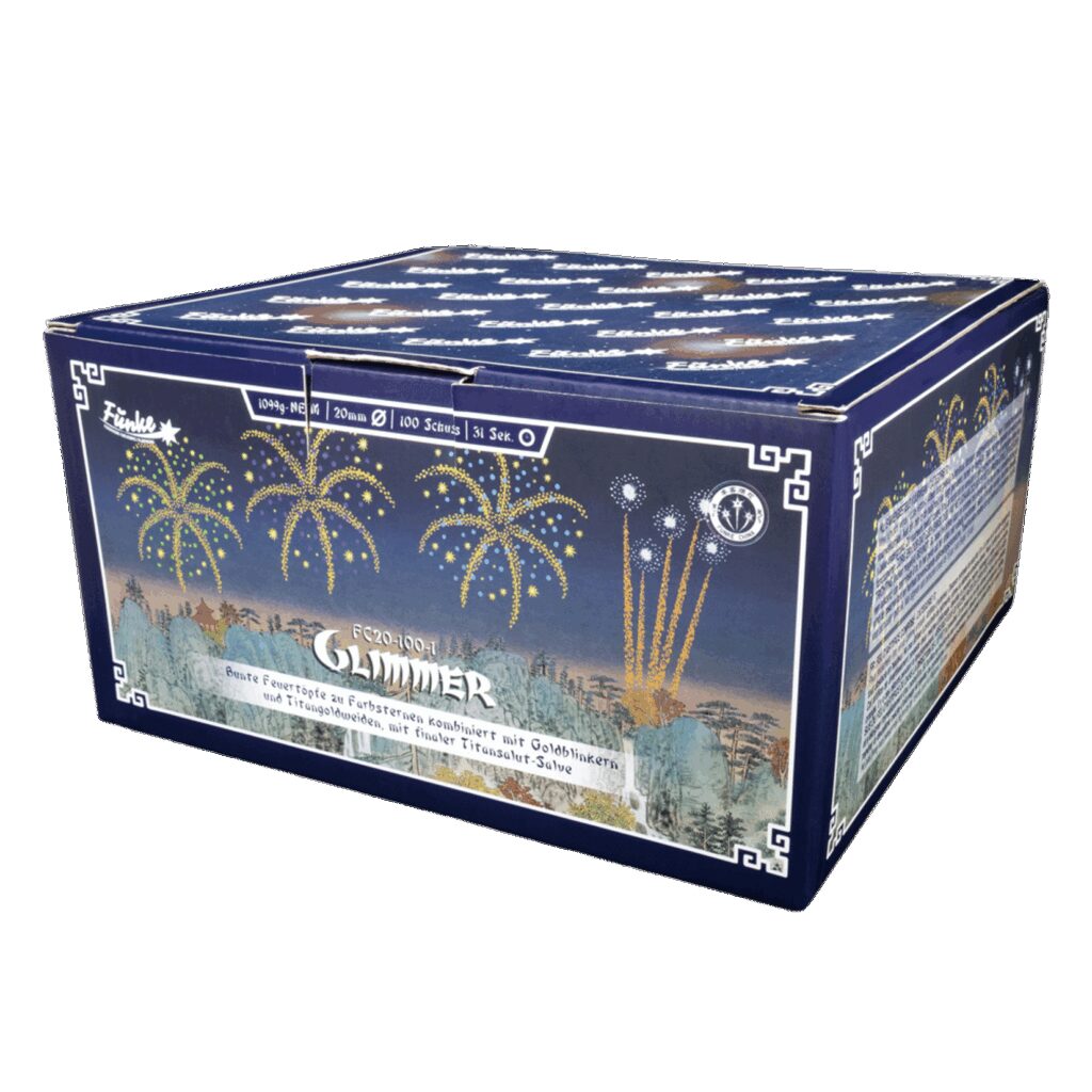 n n100 Schuss Verbund im Kaliber 20mm n n Funke Fireworks Glimmer 100 Shots Goedkoop vuurwerk kopen bij Vuurwerkwinkel Enschede