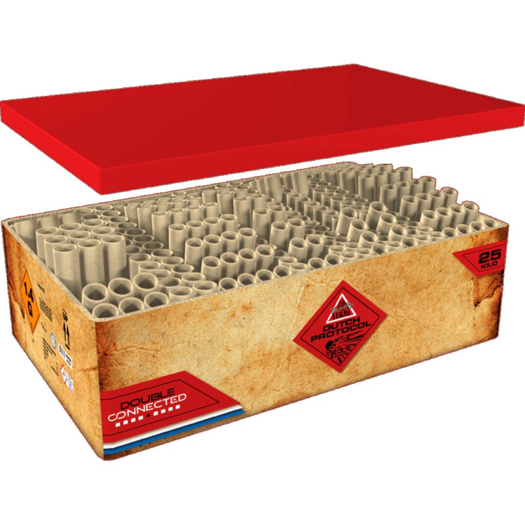 nDiese doppelte Compound-Batterie ist gefüllt mit niederländischer Pracht. Die Farben Rot, Weiß, Blau, Orange und Gold dominieren das Spektakel. Diese 25-kg-Box schießt in alle Richtungen – damit bist du definitiv der Boss der Nachbarschaft!