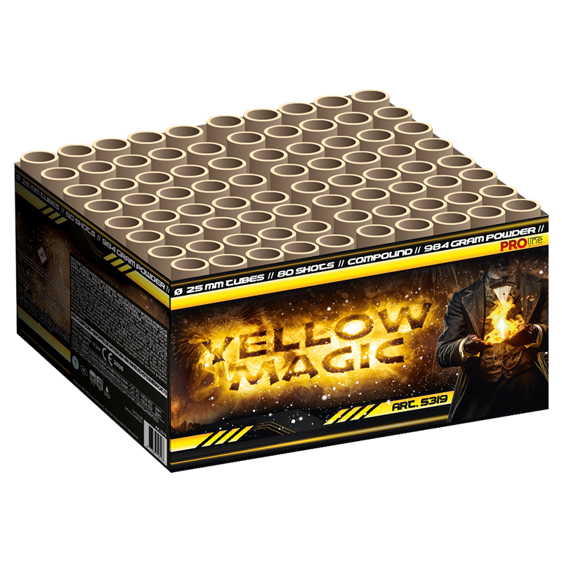 Yellow Magic 80 shots 25mm Goedkoop vuurwerk kopen bij Vuurwerkwinkel Enschede